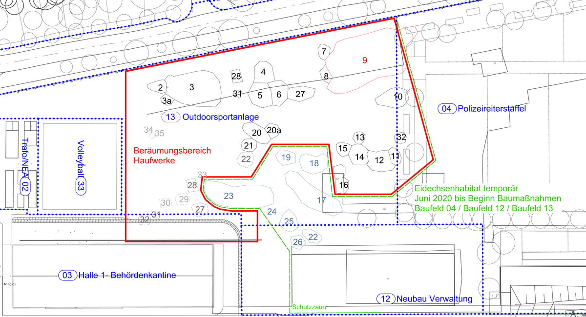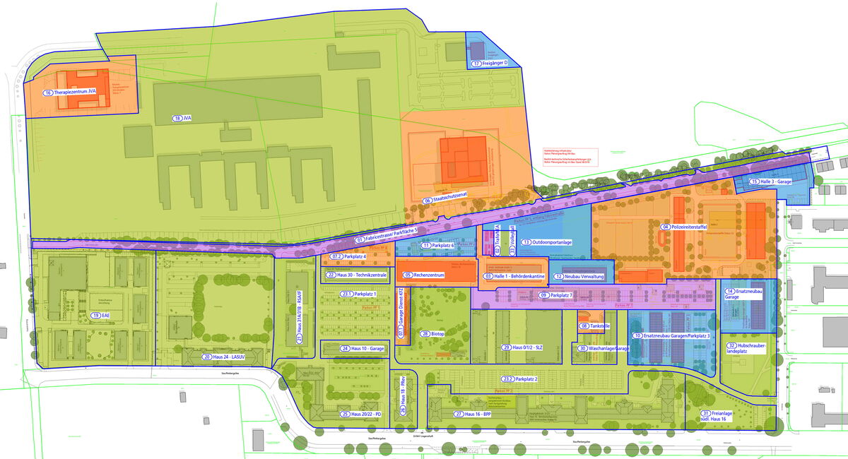 Bestandsaufnahme und städtebauliche Neuordnung des behördlichen Standortes unter Ausweisung von Ergänzungsbauflächen, Vorbehaltsbereichen für Naturschutz und Großgrün und Haupterschließungswegen; Vorentwurfsplanung einzelner Bausteine