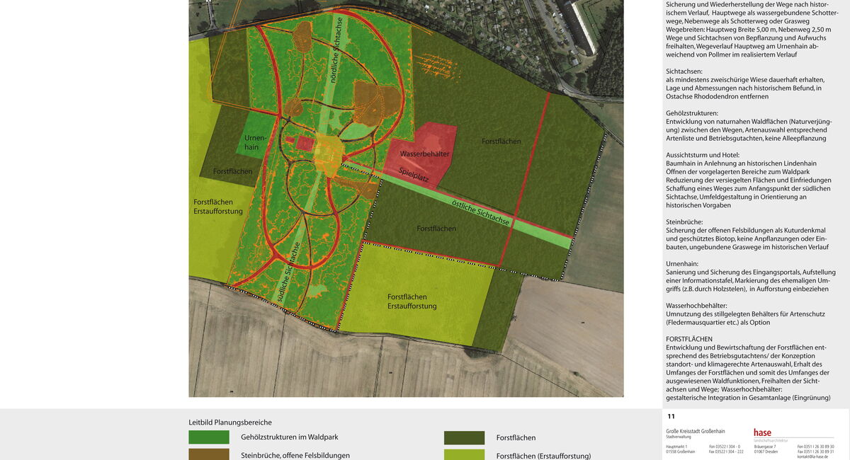 Ausgehend von dem verheerenden Sturmschaden im Mai 2010 wurde eine denkmalpflegerische Rahmenplanung erarbeitet, die für eine Wiederherstellung der Anlage Handlungsempfehlungen unter Beachtung von denkmalpflegerischen, naturschutzfachlichen, forstwirtschaftlichen und klimatologischen Gesichtspunkten gibt.